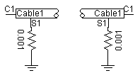 This parameter helps to alleviate clutter on the component graphic by automatically connecting a resistance to ground to either of the concentric conductors. In the past, this had to be done by connecting a resistor and ground directly on the schematic.