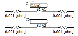 However, if you have selected to automatically ground these external connection through a resistor, you will not need to add components as shown above. See the parameters called Ground Sheaths/Armours/Outer Conductors with a Resistance and Sheaths/Armours/Outer Conductors Resistance below. |