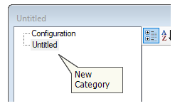 When you first create a new component, a default category called Configuration will be created for you. Categories are shown in the WYSIWYG display, but only if there are more than one. Therefore, the Configuration category will not initially be visible, as there is only one category. Once a second category is added, the tree will appear: