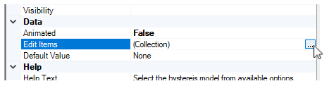 Choice fields are constructed using the Drop List Editor. To open the editor, left-click on the '...' button in the property form Edit Items property.