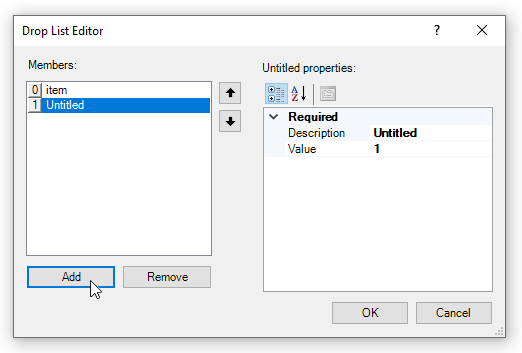 The Drop List Editor will appear. To add choices to the list, click the Add button.