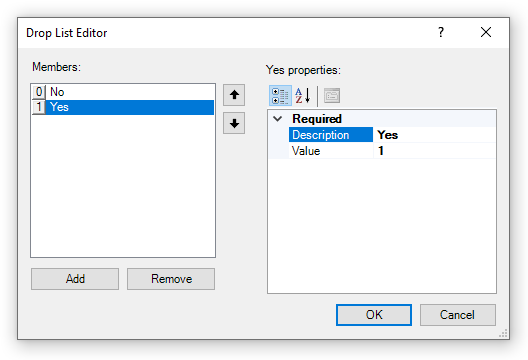 Once multiple choices exist in a list, they may be re-ordered as follows: Select the desired choice from the Members list. Click the up or down arrows to move it up and down the list.