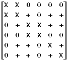 By adding in Matrix-Fill information, we can tell PSCAD to add connection information to the matrix so it will appear as follows, where '+' indicates a connection added by Matrix-Fill: