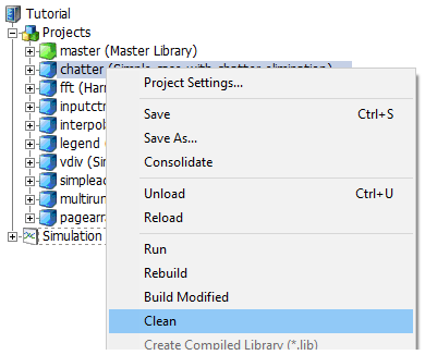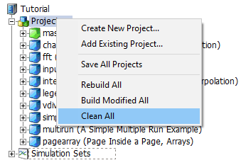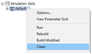 Right-click on any Simulation Set in the workspace pane, and select Clean from the context menu: