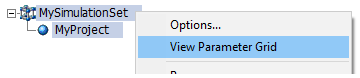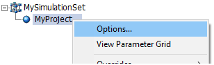To invoke the Simulation Set Options dialog, right-click on an existing simulation set and select Options...