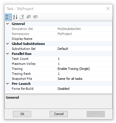 Task Count: Specify the total number of times a simulation will execute. Each simulation can launch multiple instances of itself for batch processing, each assigned a rank number used to isolate control behaviour. See Parallel Multiple Run (PMR) for more details.