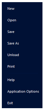 A simple unload action. Clicking Unload will unload whichever file was selected in the workspace, prior to entering the File tab. See Unloading a Project.