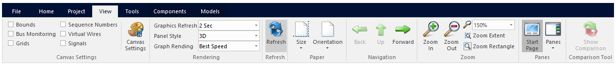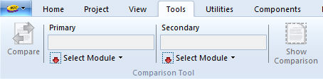 The tools tab provides a place to house button for features inherent to PSCAD. As of PSCAD v4.6.0, the only controls here are that for the Comparison Tool.