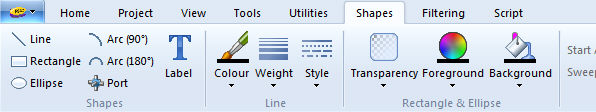 The shapes tab deals with graphical objects in the Graphics section of The Definition Editor.