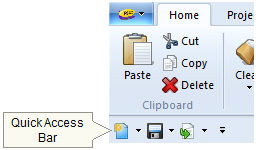 The ribbon control bar comes complete with a customizable button bar called the Quick Access Bar. Any function that is defined within the ribbon control bar can be added to this bar for quick access.