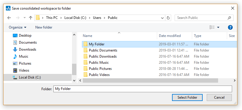 Choose a destination folder for the consolidated files in the resulting dialog, and then press the Select Folder button.