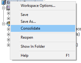 Workspaces may be quickly and efficiently consolidated, so that all books and associated dependent data files will be automatically moved and organized into a specified, local folder. To consolidate a workspace, simply right-click on the workspace branch and select Consolidate.