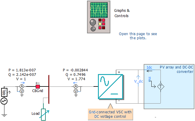 This is an example of a Grid-Connected VSC with DC Voltage Control. The converter links a 3‐phase ac source to a dc load/source through a voltage‐sourced converter (VSC). The VSC comprises 6 IGBT‐diode pairs, which form a 2‐level 3‐pole bridge.