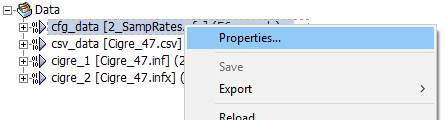 To edit dataset properties, right-click on a specific dataset within the Data branch, and select Properties...: