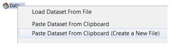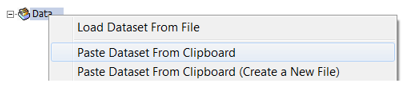 From the Data branch context menu in the workspace tree, select Paste Dataset from Clipboard.