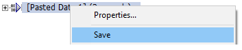 Note: The file will be saved as a comma separated file, *.csv. The pasted data will appear within the Data branch.