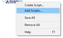 When the Add Scripts dialog appears, browse to the desired script file, then select Open.