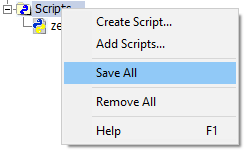 From the Scripts branch context menu in the workspace tree, select Save All.