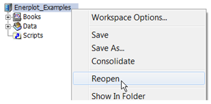 To close and re-open the workspace and associated books, right-click on the workspace, and select Reopen.