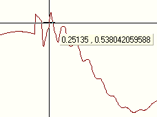 As shown above, the curve xy data will be displayed beside the cross hair. When your left mouse button is released, the cross hair will disappear, but cross hair mode will remain invoked until you press the C key again (or select Preferences | Show Cross Hair).