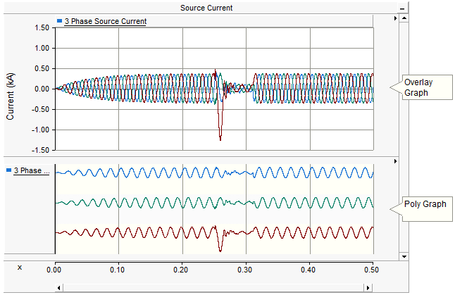 Graph frames may accommodate single or multiple graphs. To add one or more graphs, right-click on the frame title bar and select Add Overlay Graph (Analog) or Add PolyGraph (Analog/Digital). You can also add an overlay graph directly by pressing the Insert key on your keyboard with your mouse pointer over the graph frame.