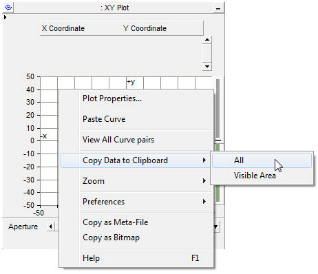 If a simulation has been run and your xy plot contains curve data, you have the option of copying all or a portion of this data to the clipboard.