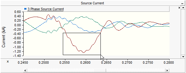 Select the desired graph with a left-click on the graph display area. Click and hold the left mouse button and drag the mouse pointer to create a boxed region. Release the left mouse button to zoom to that region.