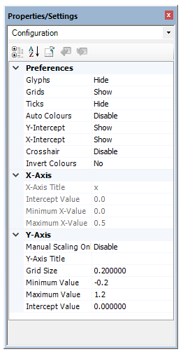 When a graph or the canvas itself is selected using a left mouse click, the settings for that item are displayed.