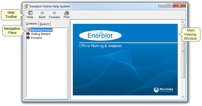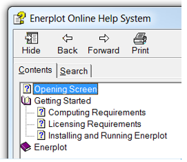 The Enerplot on-line help is a single compiled file in Microsoft HTML Compiled Help format. This file includes its own browser, and features a full-text search engine and comprehensive index.