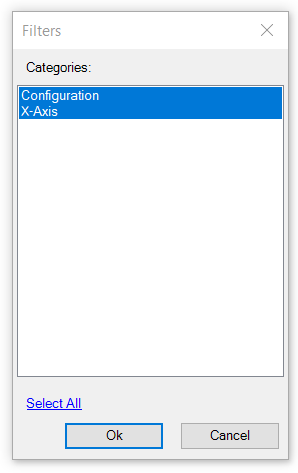 The instances displayed can be sorted by parameter category. To bring up the Filters dialog, right-click and select View Filters, or click the Filters icon: