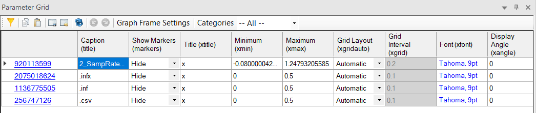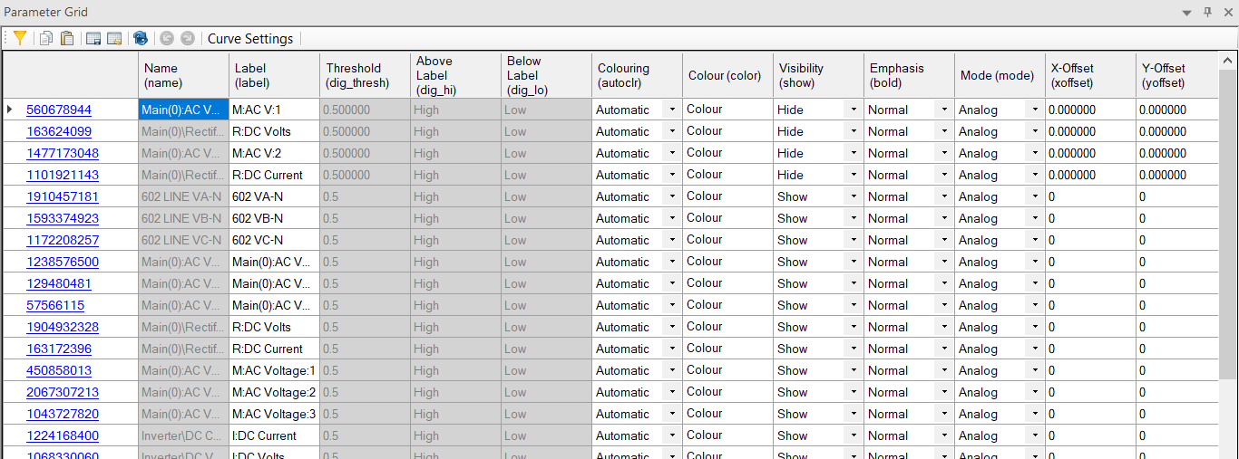 The parameter grid pane is a powerful tool, which provides a convenient and efficient means to display and modify the parameters or properties of a wide range of objects and functions. Viewable in the parameter grid are: