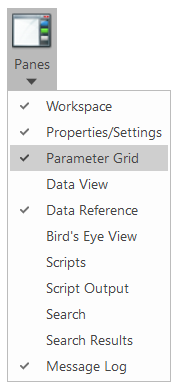 The parameter grid pane can be viewed by simply selecting it in the Panes drop list button, under the View tab of the ribbon control bar.