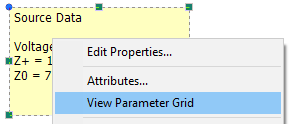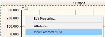 To populate the contents of the parameter grid, select an object, right-click and select View Parameter Grid. If a View Parameter Grid option is not available in the right-click context menu, then the object is not supported by the parameter grid.
