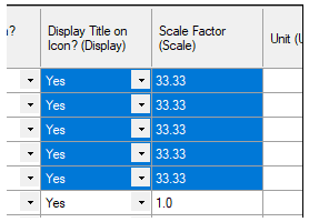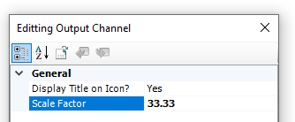 The default setting for each parameter is default value defined in the corresponding object definition. If the dialog is closed at this point no parameters will be modified. Let us say that we want to modify the Scale Factor of each of the selected output channels to say, 33.33.