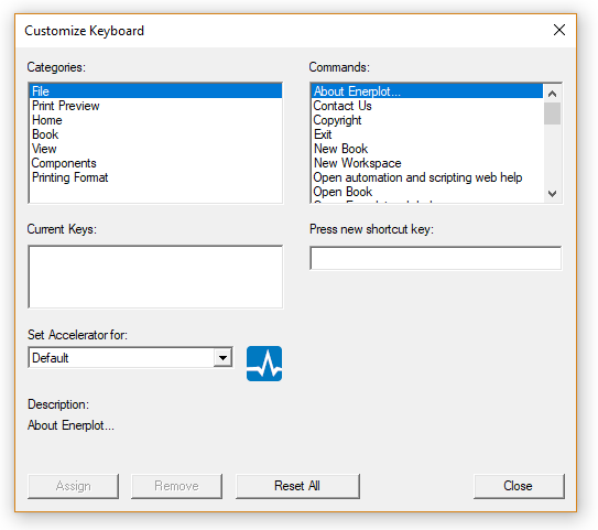 There are many keyboard shortcuts (or hotkeys) available. Hotkeys help to reduce the 'amount of clicks' required for performing a specific task. The following tables list the available keyboard shortcuts.