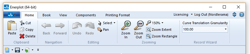 The ribbon control bar provides easy accessibility to most features and components in Enerplot. Included with the ribbon is an inherent quick access bar, which is fully customizable for placement of favoured and well used button actions. The ribbon control bar is featured prominently across the top of the application environment.