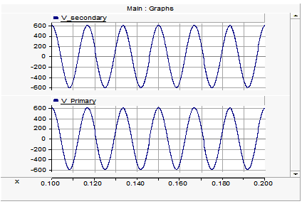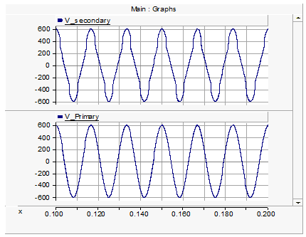 Figure 6-8b - Primary and Secondary Voltages when the Saturation Current is Injected at the Secondary Winding