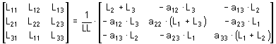 As mentioned previously, the inverted inductance matrix of an 'ideal' three winding transformer is not as simple as that of an 'ideal' two winding transformer. The inverted inductance matrix of an 'ideal' three winding transformer is given as follows: