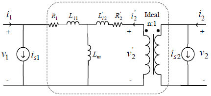 ) and the voltages can be directly expressed as in Equation 6-18; derived by considering the circuit equations for a short-circuit test conducted on one side, with a voltage source applied to the other (keep in mind that