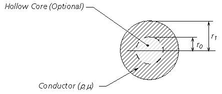 Each overhead conductor is modeled assuming a perfect cylindrical shape, which may possess a hollow core. As such, the conductor is represented by a combination of inner and outer surface impedances. If the conductor is solid, only the outer surface impedance is considered. The composition of the conductor is assumed to be homogeneous – that is, composite conductors, such as ACSR must be approximated as homogeneous.