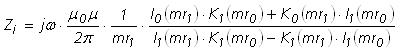 The internal impedance for an overhead conductor is given as shown below. The LCP uses an analytical approximation to the well known Bessel based equations. Both the analytical approximation and Bessel equations are given here for easy reference: