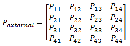 In the above diagram, cables 1 and 2 are underground and cables 3 and 4 are aerial. The Zearth and Pexternal (potential coefficient matrix for external field) matrices are given as follows: