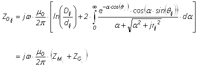 The aerial/underground cable mutual impedance is given as follows.