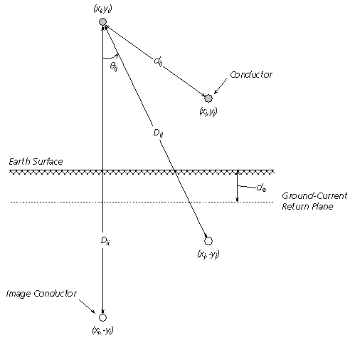 An ingenious method for dealing with ground return, published by Gary in 1976 [10], introduced the concept of a super conducting, current return plane. This fictitious plane was placed at a complex depth de, also known as the depth of penetration, and provided a mirroring surface where the conductor 'reflections' were used to derive very simple equations for ground return impedance. Although published in 1976, mathematical proofs for these equations did not surface until Deri and Semlyen in 1981 [12]. Basically, what is now referred to as the Deri-Semlyen approximation of Carson’s Integral is as follows:
