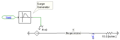 Selection of the wave shaping constant tS can be made in order to shape the steep front of a travelling wave to a known attenuation and slope. If one is concerned about matching the steep front from the Bergeron line model to a known response, tS must be adjusted by trial and error. Care should be taken when using the wave shaping time constant, because although the real pole will attenuate the high frequency components of the line, it will also introduce an additional lag or time delay, which in turn affects the overall travel time and thus, the effective line impedance.