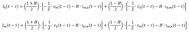 The change in Norton impedance Z is reflected in the definition of the Norton current injections Ik and Im as follows: