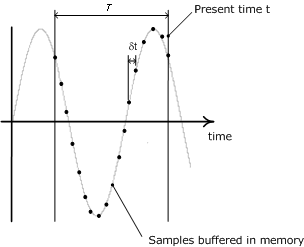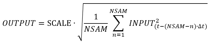 The output is refreshed whenever a sample time is encountered, as described above, based on the input quantities stored in the input buffer. The output RMS signal is given by: