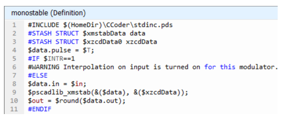To facilitate this functionality, we have added a brand-new component definition script segment, called ‘C’, where we have placed C-code script that is functionally equivalent to the component’s original Fortran-based script. The ‘C’ component script segment is only ever considered when generating a C-language program.