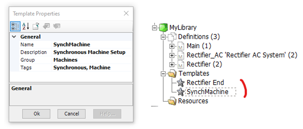 Once created, the template becomes viewable and searchable (according to its name and given Tags) via the Component Library Viewing pane. An instance of the template can be created either from the Component Library Viewing pane, or directly from the workspace tree.