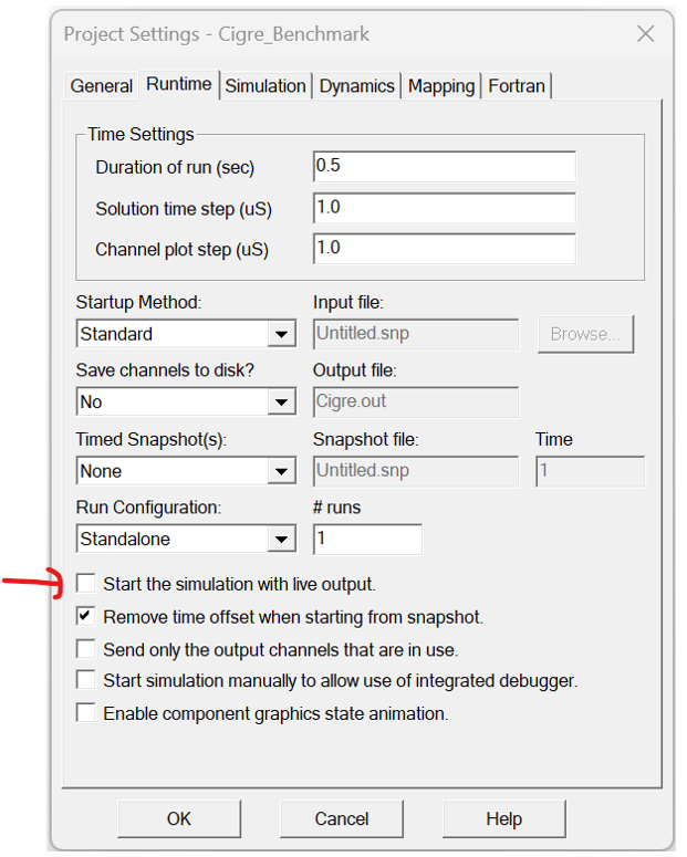Allowing EMTDC to Run Ahead of PSCAD (Live): Starting in PSCAD v5.1, EMTDC by default will run unfettered to PSCAD. That is, EMTDC is not obligated to wait for PSCAD to process data it sends back for plotting, etc., before proceeding to the next time step. This increases the simulation speed, and along with other speed optimisations, helps EMTDC to run faster than it ever has before, especially for very parallel simulations.